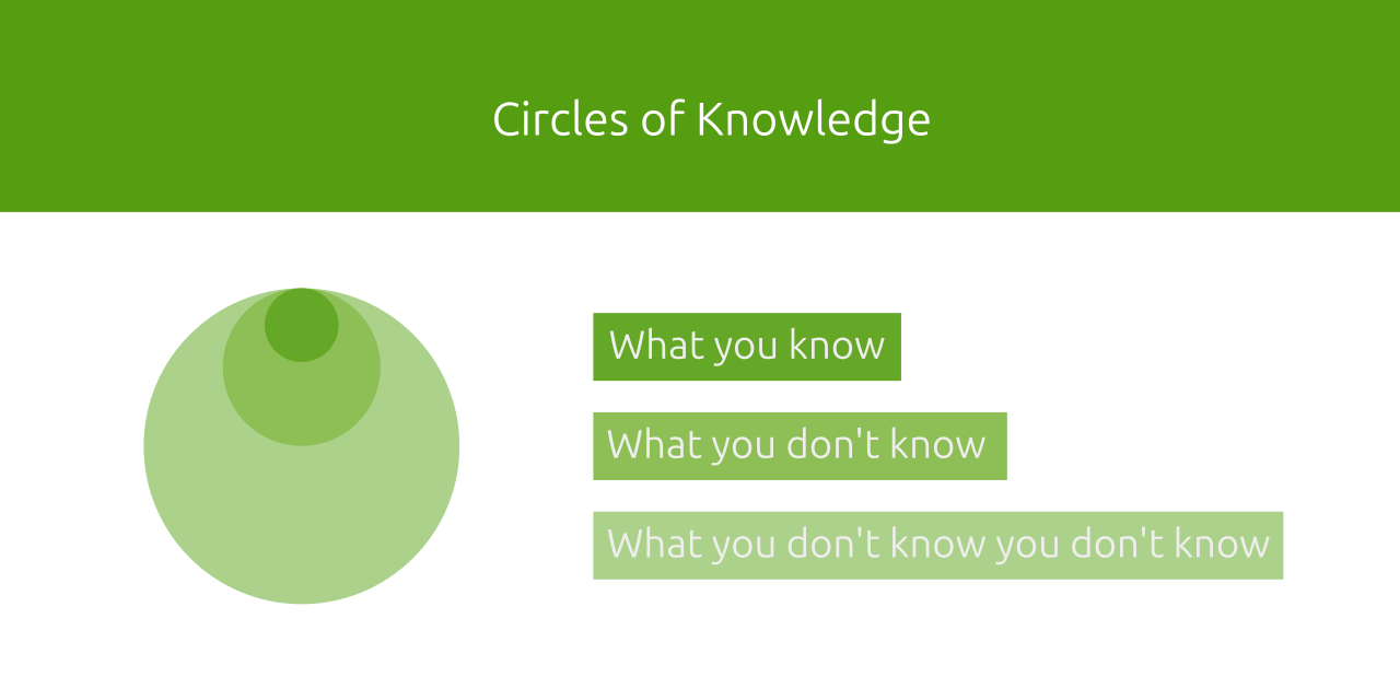 Also, itâs fine if you donât know, as itâs always way more what you know, and what you donât know, you donât know is even more (no need to puzzle over, just look at the chart above). There will always be people better than you, and you will always be better than others. Know what you bring to the table, and you will be fine.