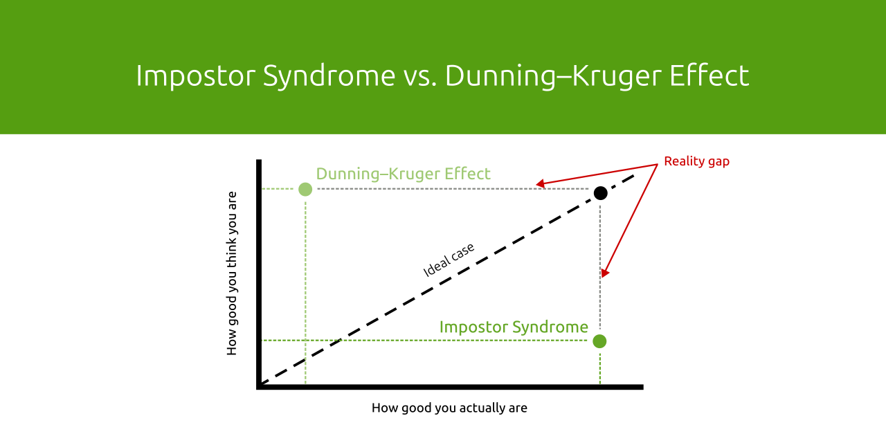 Donât swing to the opposite extreme and slip into the DunningâKruger effect, where you start believing youâre better than you actually are.